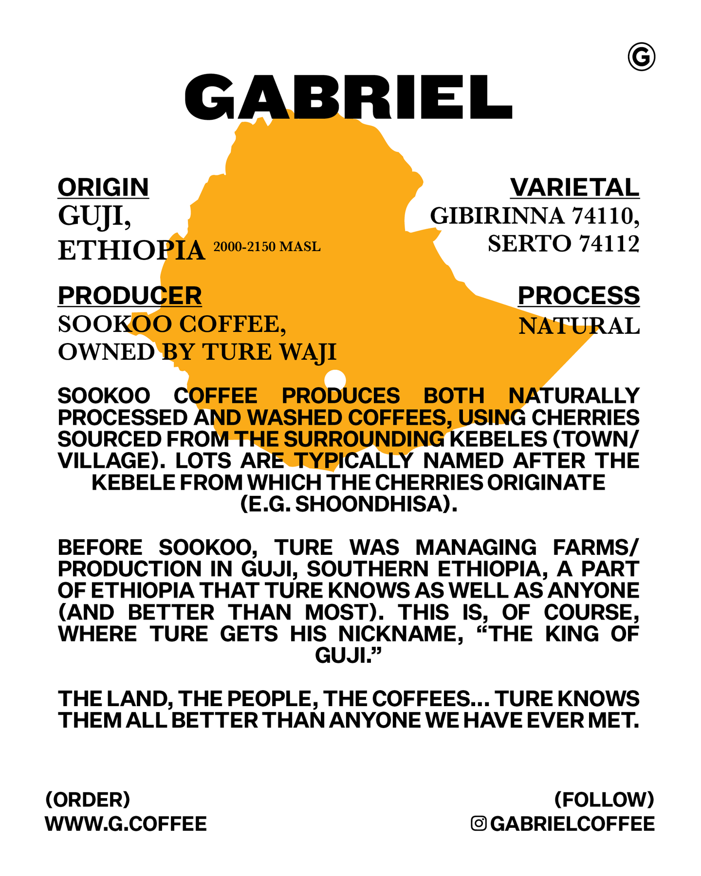 Before Sookoo, Ture was managing farms/production in Guji, southern Ethiopia, a part of Ethiopia that Ture knows as well as anyone (and better than most). This is, of course, where Ture gets his nickname, “The King of Guji.”